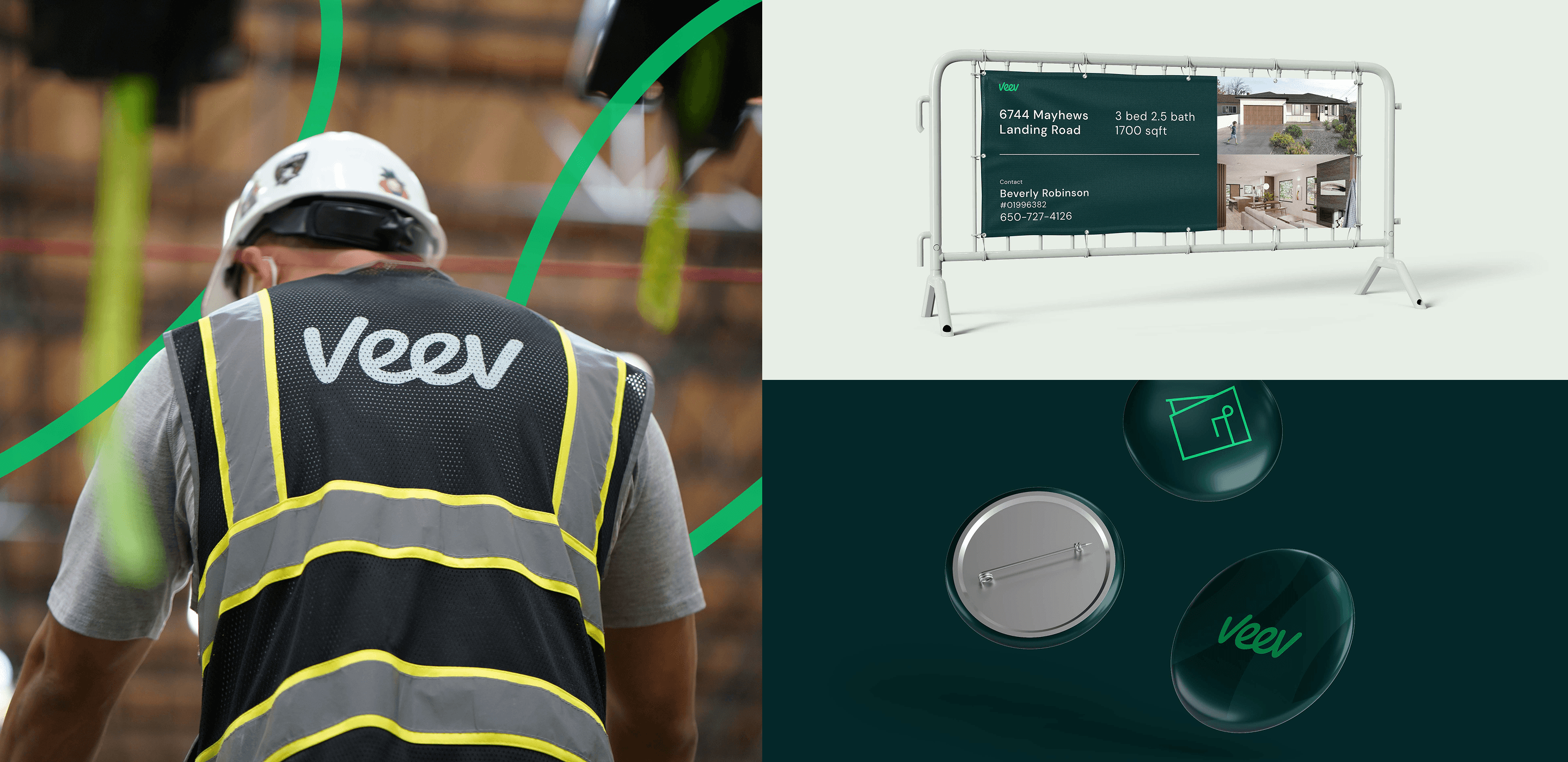 The 8pt design grid carries through from UI dashboards to printed collateral, with motion and transitions echoing Veev’s manufacturing sequence: frame, place, secure, finish. The result is a brand system that behaves the way the company builds—clean, efficient, scalable.